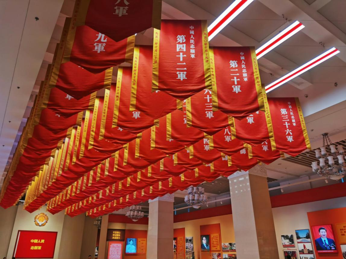 “谨记伟大得胜捍卫和公平义”,我带着小侄女来到牵记中国东说念主民志愿军抗好意思援朝出洋作战70周年主题展览。进了展厅,小侄女坐窝被展厅诱骗,仰着小脑袋东张西觑,米格-15歼击机、215号坦克,小眼睛都忙不外来了,稚气的小脸儿上写满了有趣,一切在她眼里都那么热血倾盆。咱们沿着蹊径往前走,看到墙上张贴的得胜战报、玻璃柜里摆放的缉获刀兵,小侄女竖起脊梁,自重的边幅甚是可人。“很多红旗!”在高高吊挂的百面印有志愿军部队番号的旗阵下,我和小侄女一王人仰头安身,旗阵无声,却仿佛在诉说着当年枭雄们浴血奋战的故事。